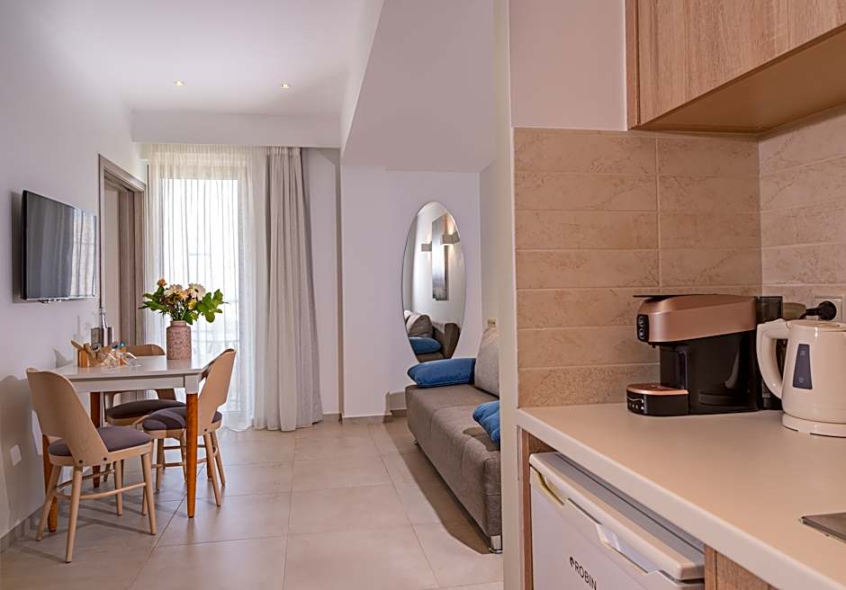 The spacious twin/double room provides air conditioning, a tea and coffee maker, as well as a private bathroom featuring a walk-in shower and a hairdryer. The twin/double room's kitchenette, which features a refrigerator, is available for cooking and storing food. This twin/double room consists of a dining area, a flat-screen TV with satellite channels a seating area and a balcony.